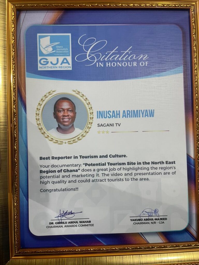 “Alhamdulillah!!! We won Best Reporter of the Year in Tourism/Culture. North East Potential Tourism Sites documentary. Thanks GJA, Northern Region.”