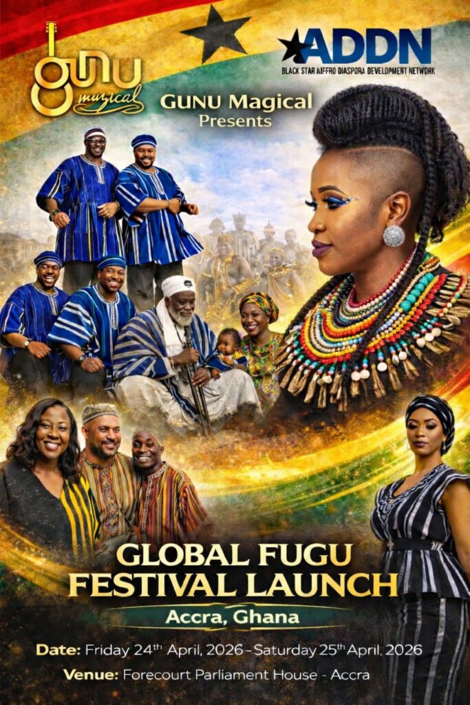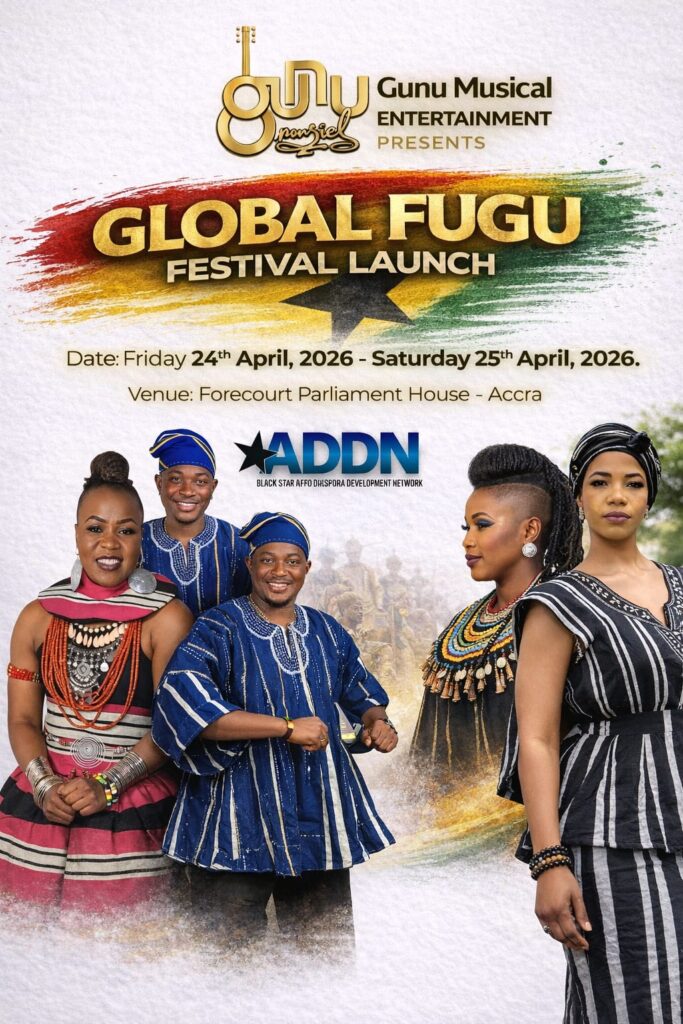 The festival launch is being organized by Gunu Musical Entertainment in collaboration with Black Star Afro Diaspora Development Network. The two-day event is scheduled to take place from Friday, April 24 to Saturday, April 25, 2026, at the forecourt of the Parliament House in Accra.