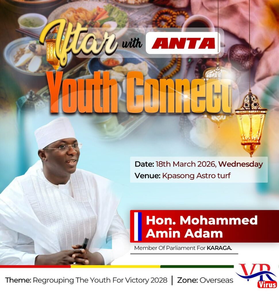 The Karaga youth community is set for an engaging and impactful evening as “Iftar With ANTA – Youth Connect” comes off tonight at Kpasong Astro Turf. The initiative, fully sponsored by NPP youth leader Virus, is aimed at rallying young people in support of the Member of Parliament for the Karaga Constituency, Mohammed Amin Adam, and the New Patriotic Party.
